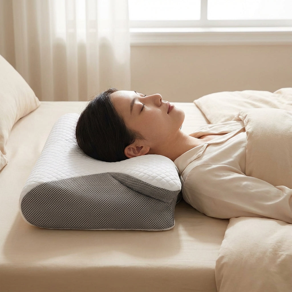 Un oreiller ergonomique conçu pour aligner votre cou, réduire les tensions cervicales et améliorer durablement la qualité de votre sommeil.